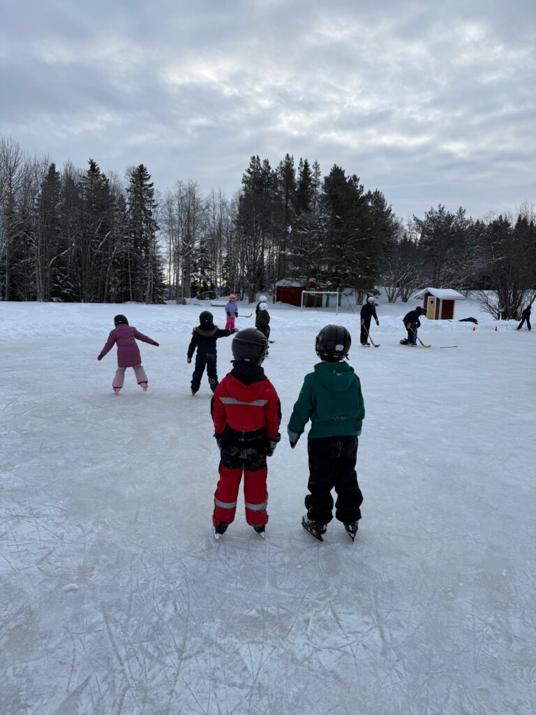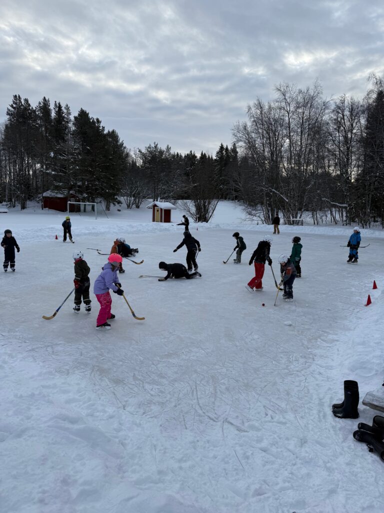 Vecka 7 har vi skridskovecka på Kövra Byskola. Då får alla elever chans att åka skridskor en stund varje dag. Isen är fin och som tur är har temperaturen stigit lite denna vecka. Alla, från nybörjare till mer erfarna åkare, spelar bandy, övar balans, slipar på tekniken och upptäcker hur de dag för dag blir bättre och bättre. Bra jobbat och heja på, säger vi!